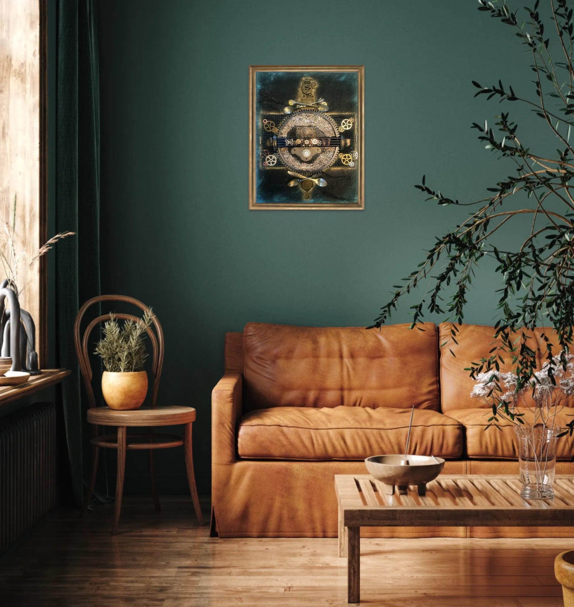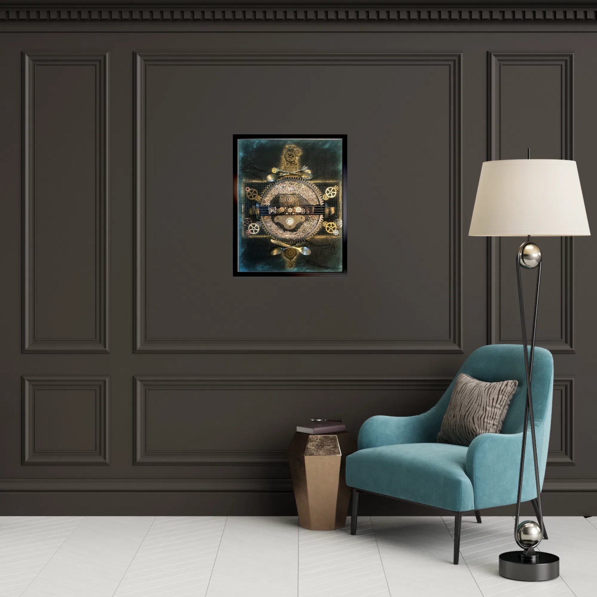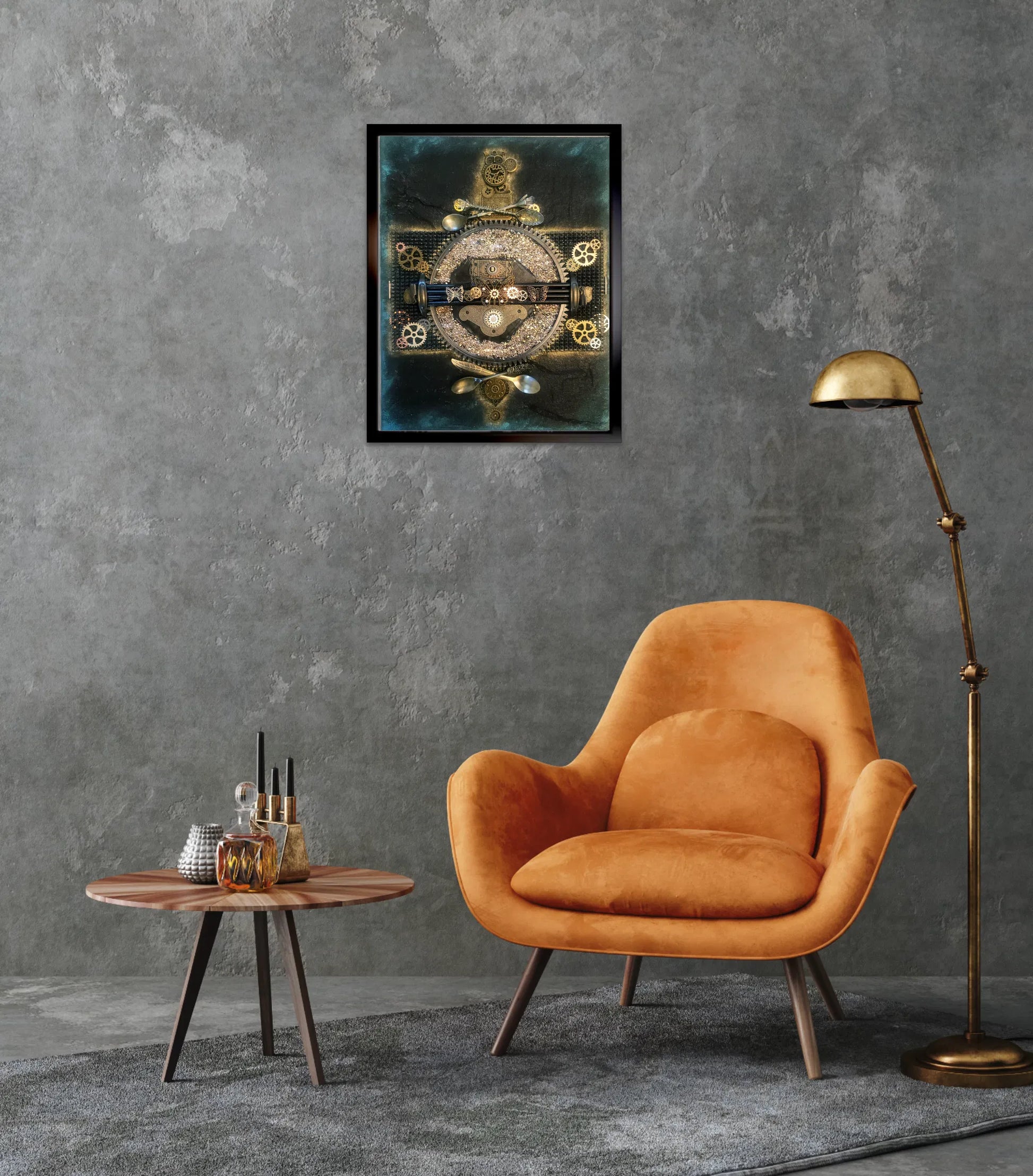Channel your inner adventurer with this Steampunk Wall Decor. This canvas art captures the essence of steampunk aesthetics, featuring gears, cogs, butterflies, spoons and more. Along with vintage machinery against a backdrop of rich colors and textures. Hang this unique piece in your home or office and transport yourself to a world of Victorian charm and futuristic possibilities. This artwork is built to last and is sure to make a bold statement wherever it's displayed. Whether you're a die-hard steampunk fan or simply appreciate eclectic artwork, this piece is a must-have. Heavier than the average canvas for this size due to the materials and embellishments. Hang and enjoy this ONE-OF-A-KIND piece. Frame not included.