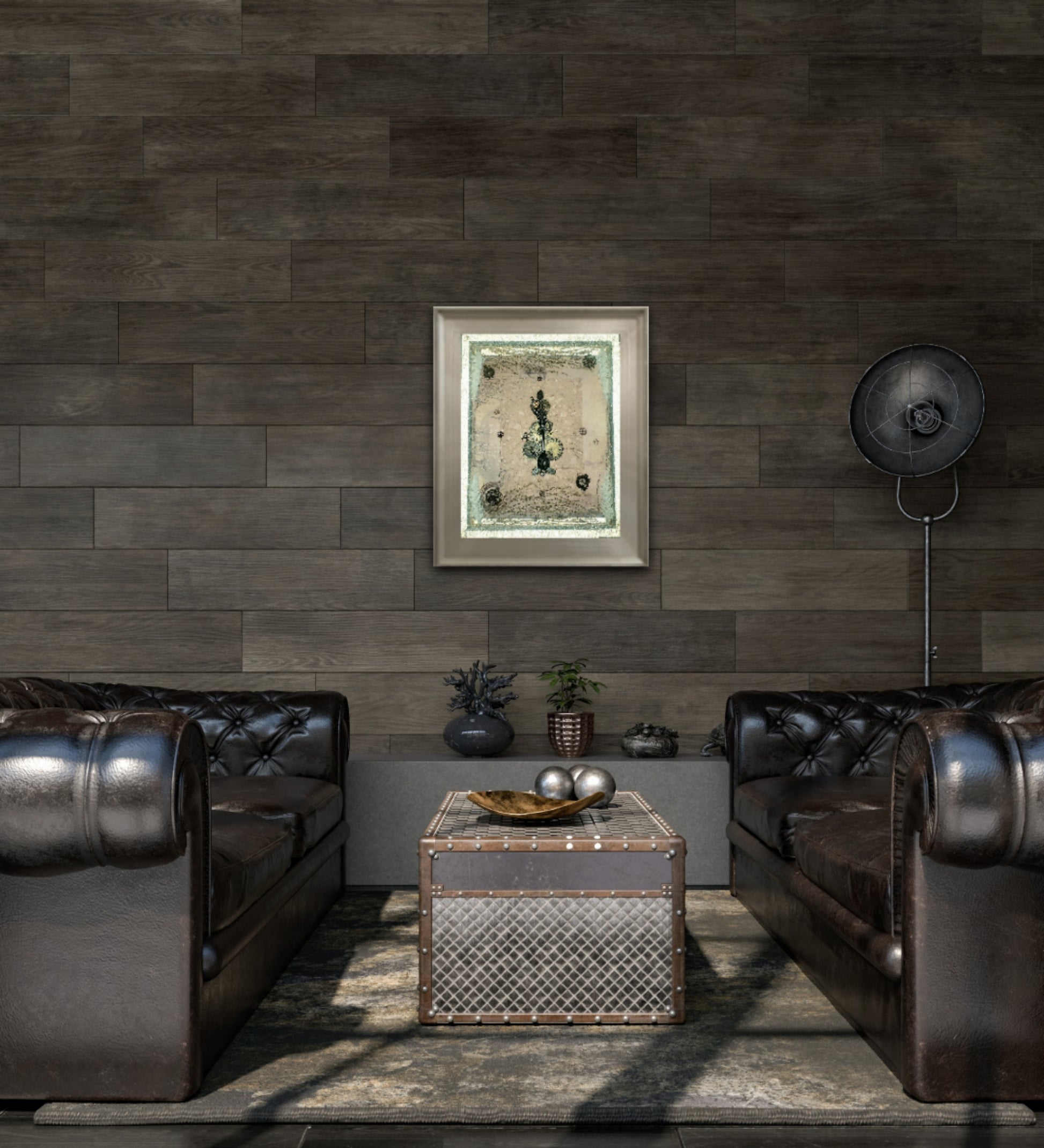 14" L x 11"W 1 1/8" H Sawtooth Picture Hanger installed for customer convenience, ready to hang. Backing details added, titled and signed by the artist.