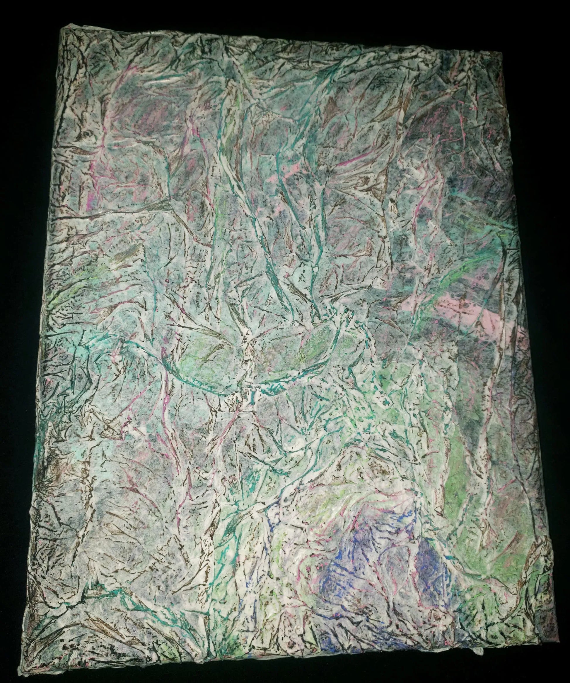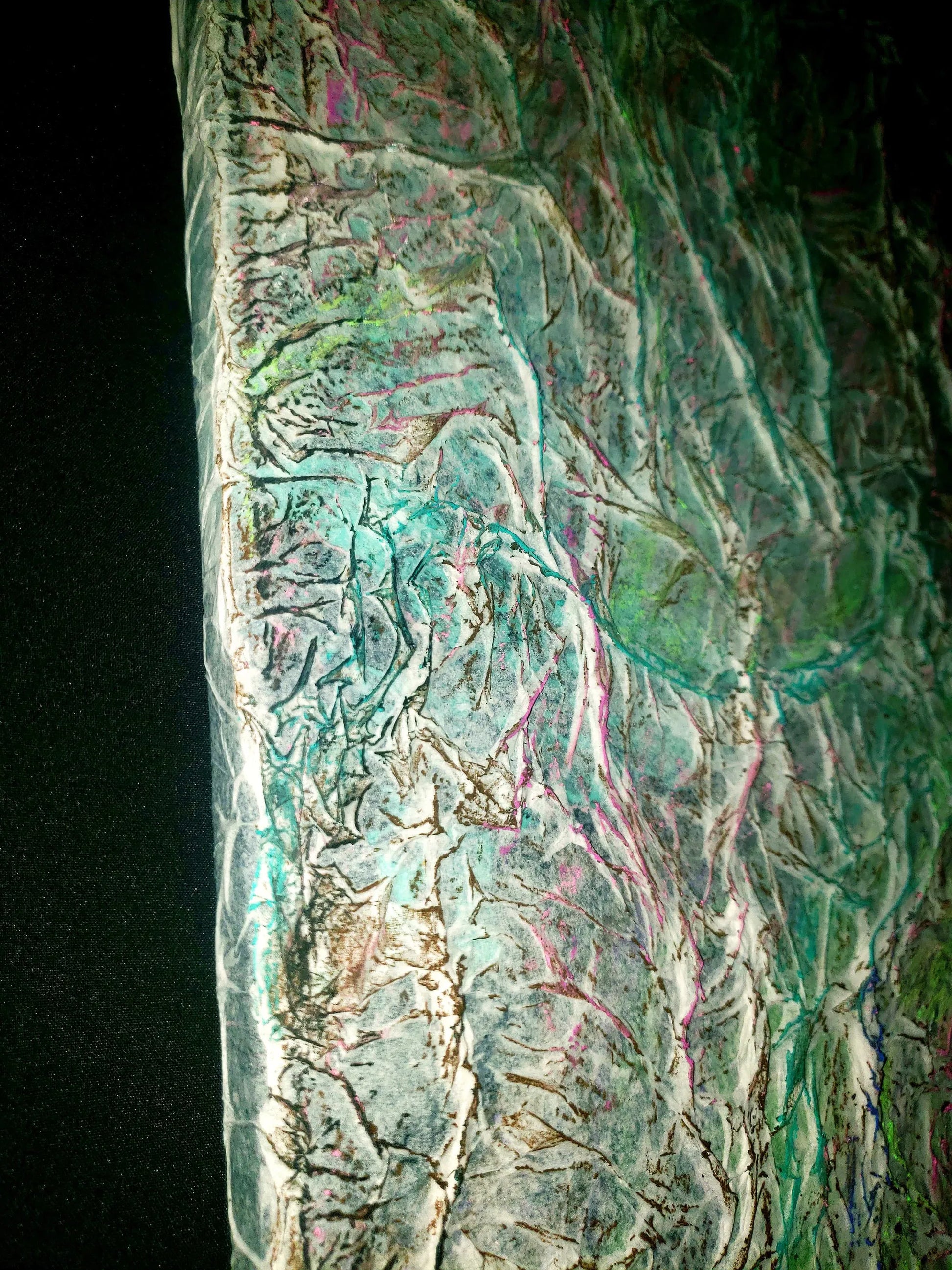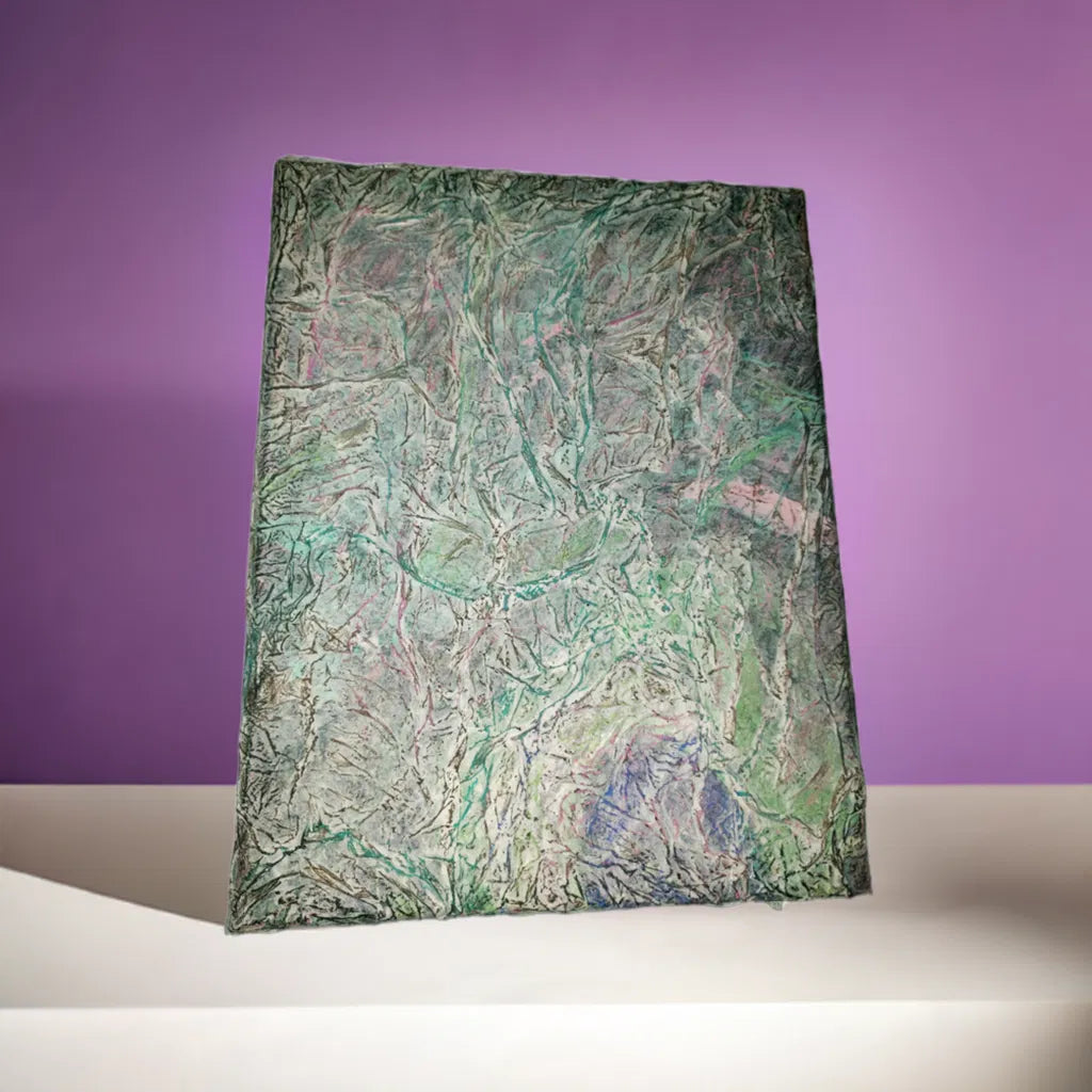 Acrylic Pour background with wrinkle overlay on Canvas. Add a touch of modern art to your space with this Acrylic Pour Painting. An appealing display of colors, texture and dimension. The underlay is created through the unique pouring technique with quality acrylic paints. The combination of rich hues using oil pastels across the canvas, creates a dynamic, unique and visually captivating piece that will make a statement in any room. Hang it in your living room, bedroom or office and let this artwork become the focal point of your space. Satin spray varnish applied for protection and durability.